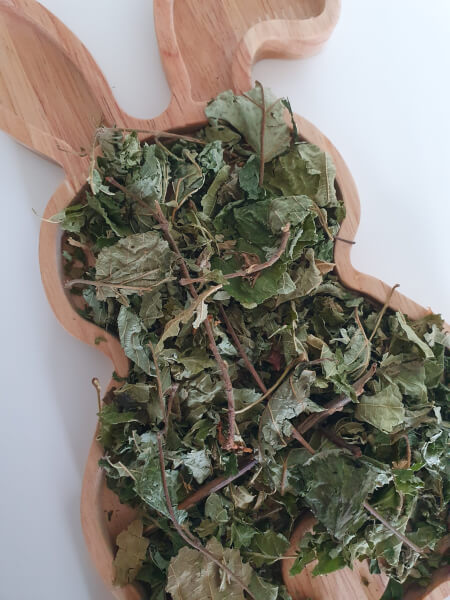 Hazelnootbladeren bevatten veel ruwe celstof en ruwe eiwitten.